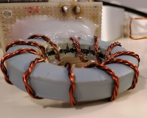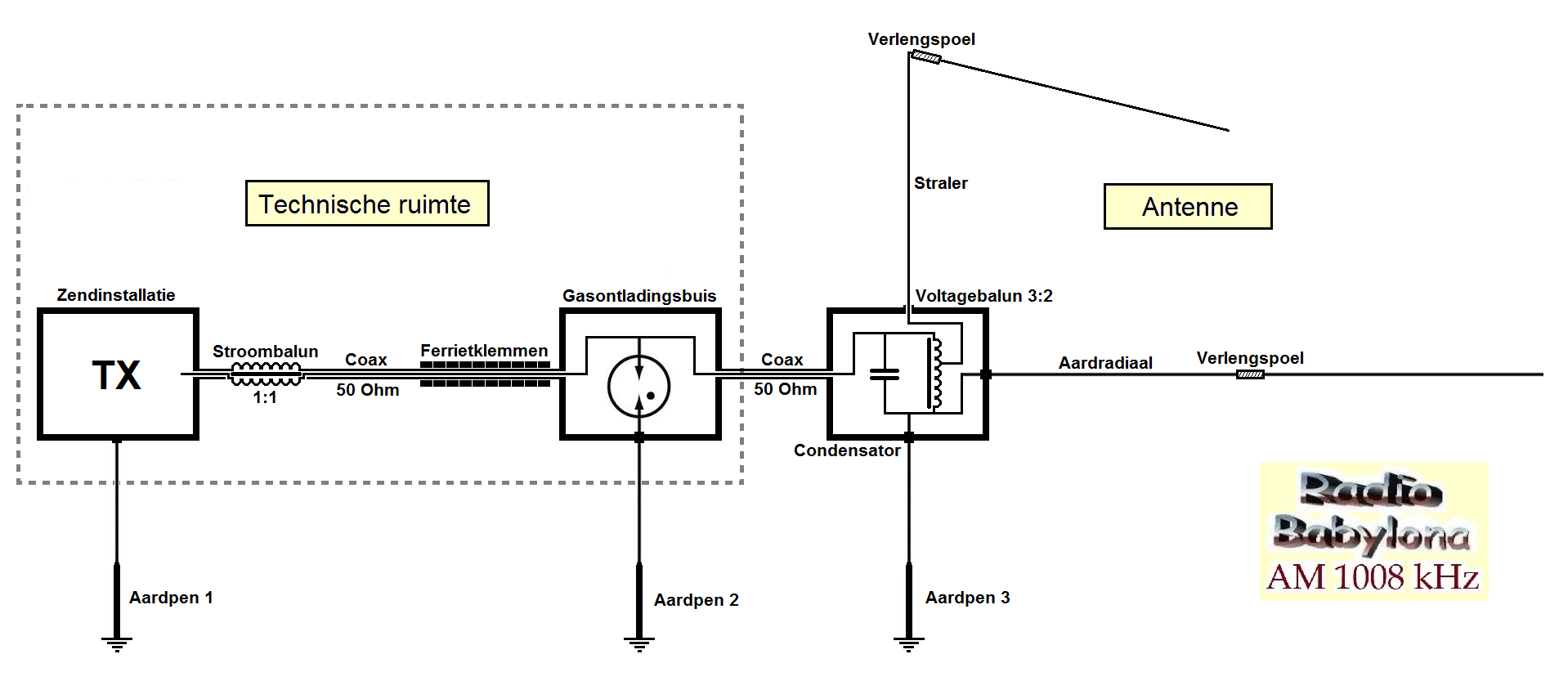 ist die Antenne etwa 100 Meter lang. Der Einspeisepunkt
