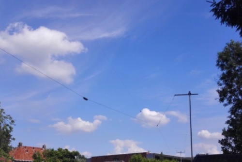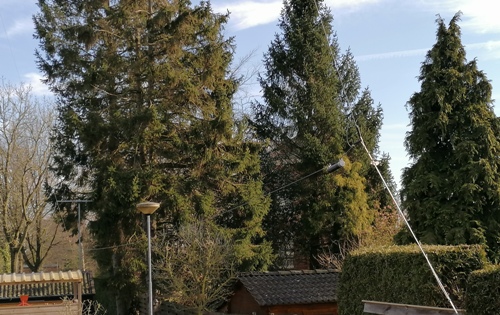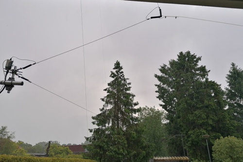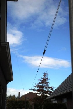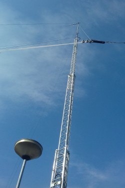 ist die Antenne etwa 100 Meter lang. Der Einspeisepunkt