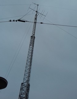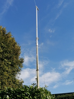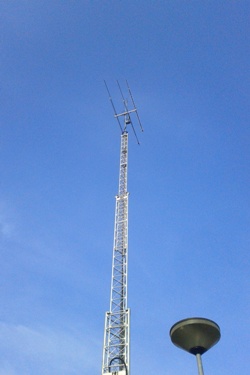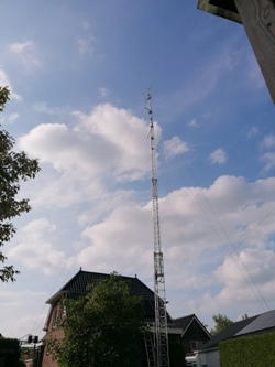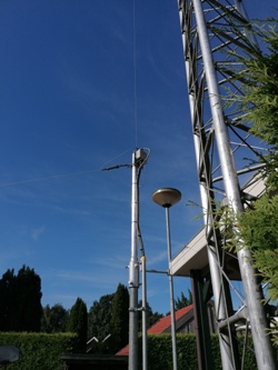 Op 21 meter hoogte zit een ¼ λ Ground Plane voor de 10
