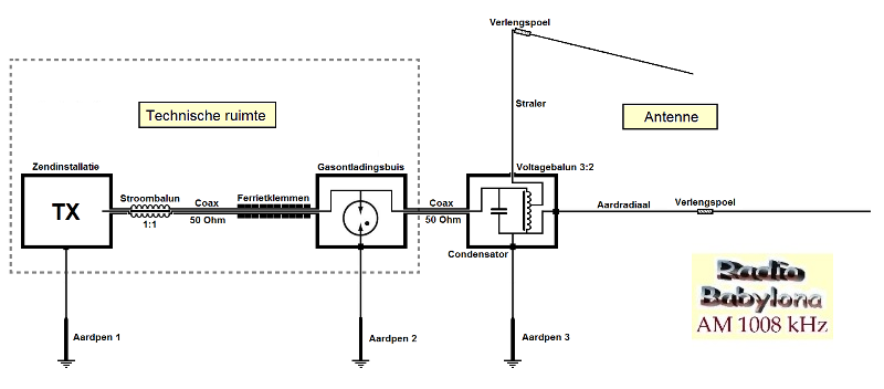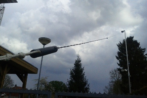 zweeft. Totaal is de antenne ongeveer 100 meter